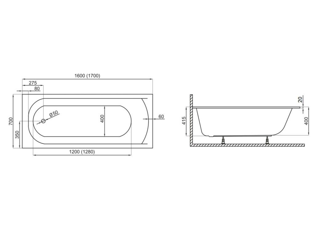 Akrylátová vaňa Polimat Classic Slim Dĺžka vane: 170 cm, 8874_170