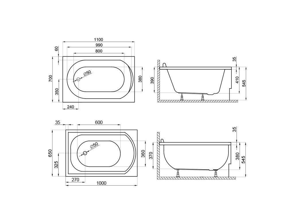 - vaňa sa dodáva s nožičkami