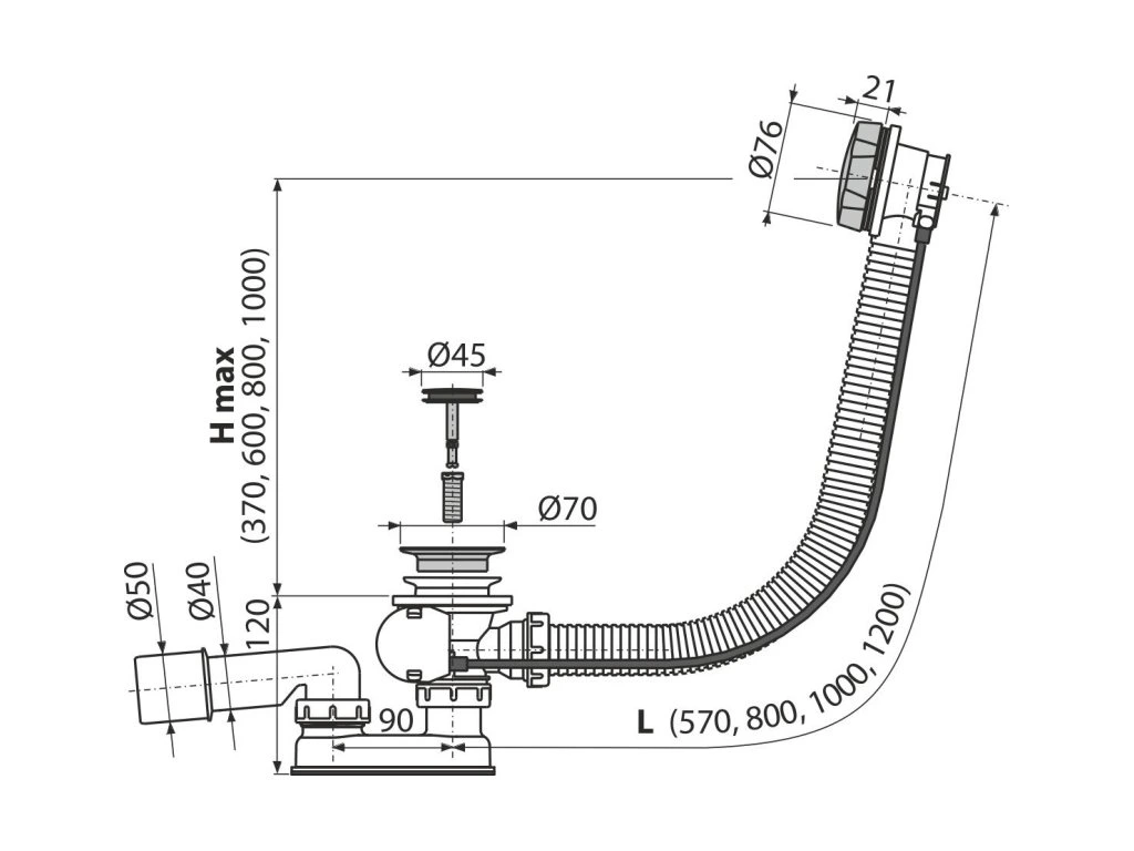 - Dĺžka vaňového sifónu 57 cm