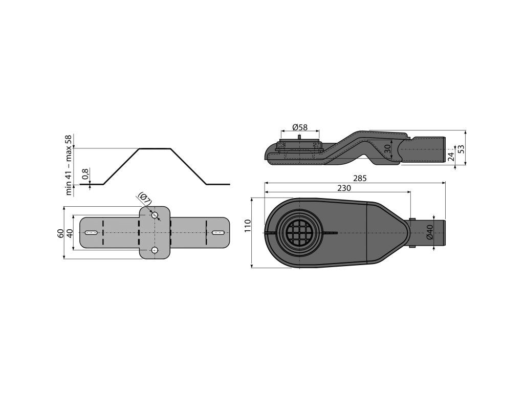 - Mechanicky čistiteľný sifón až po odpadové potrubie