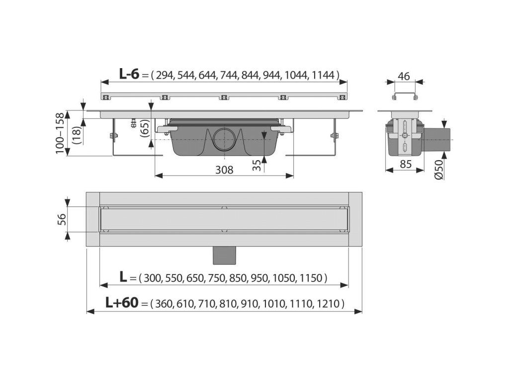 ALCA Podlahový žľab bez okraja s mriežkou na vkladanie dlaždíc APZ15-1150