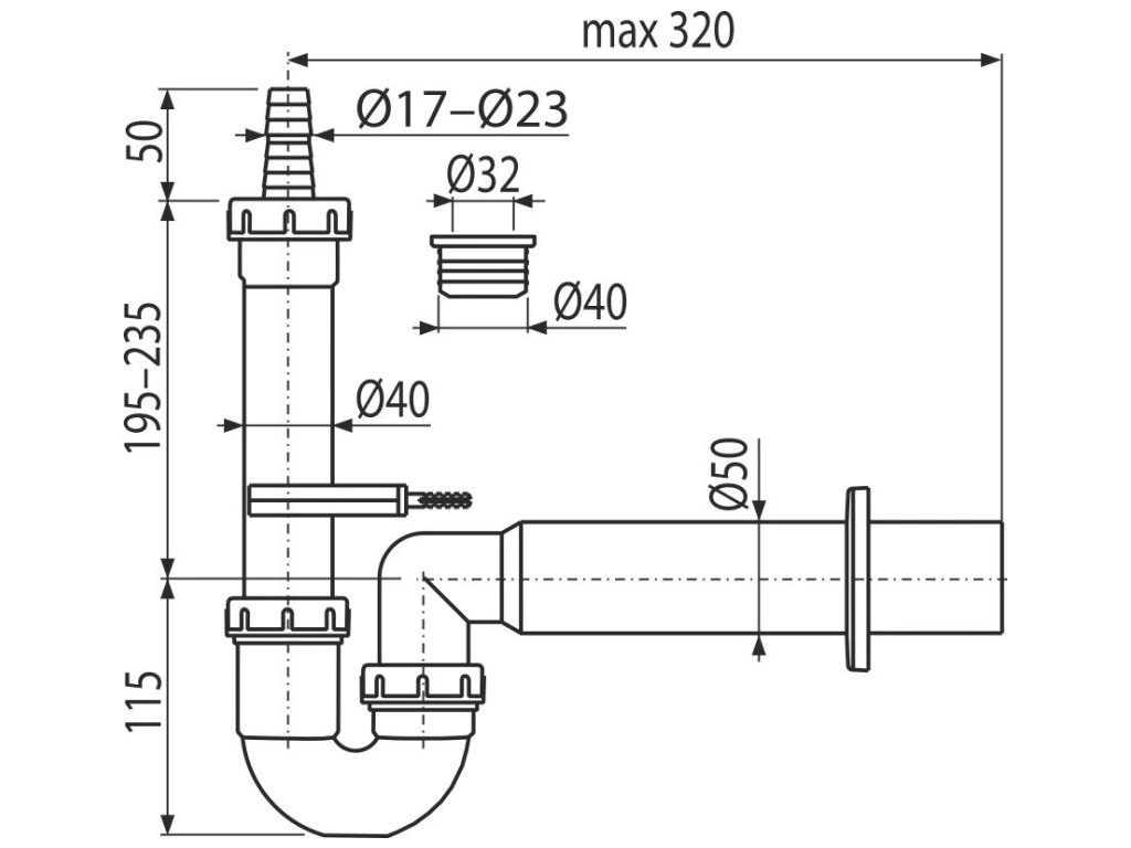 ALCA sifón pre práčky DN50 APS7-DN50