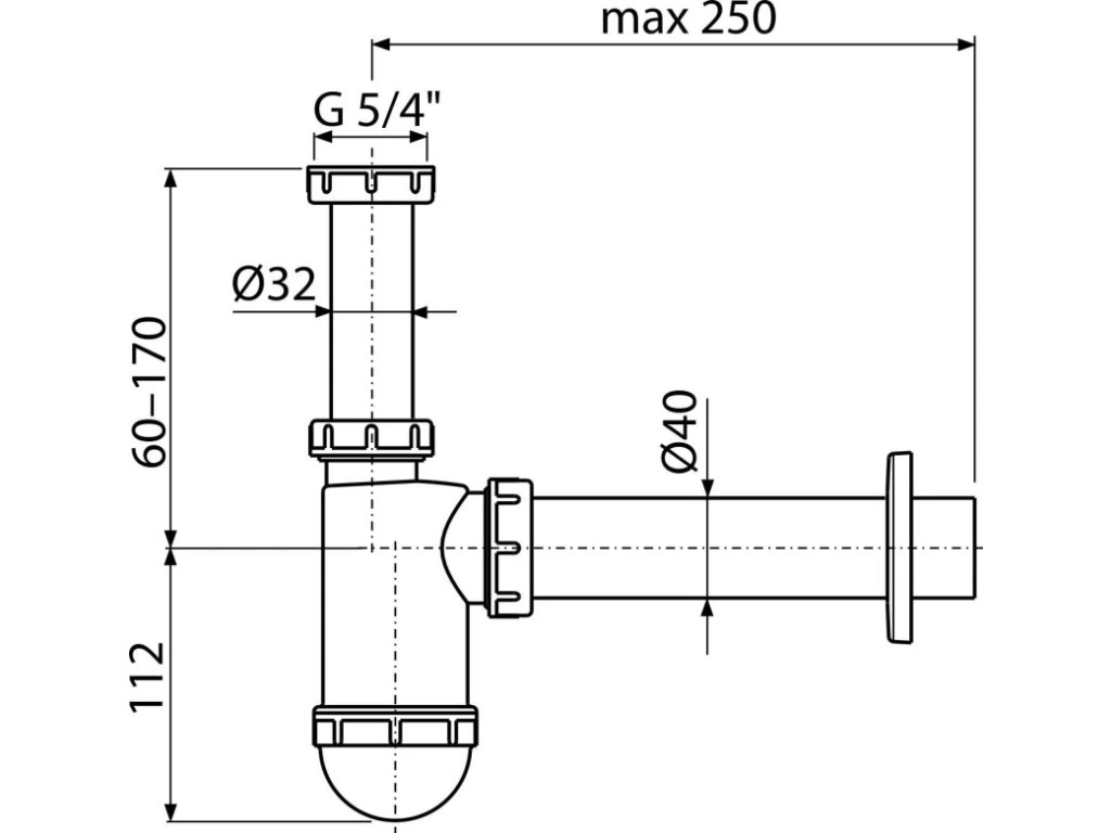 ALCA Sifón pre umývadlo DN40 s prepadovou maticou 5/4" A43