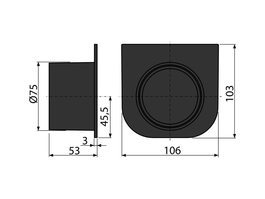 ALCA Tvár pre odkvapovú žalúziu s prívodom DN75 AVZ-P004