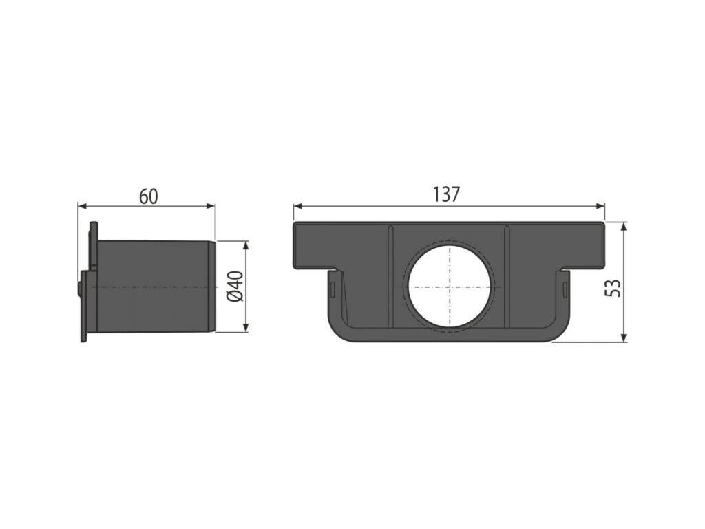 ALCA Tvár pre slepý koniec žľabu s prívodom DN40 AVZ-P018