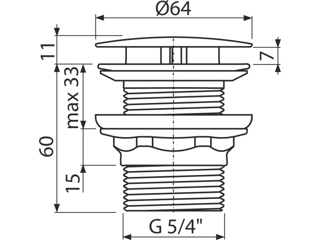 ALCA Umývadlová výpusť 5/4" celokovová, veľká netesniaca zátka, pre umývadlá bez prepadu A396SN