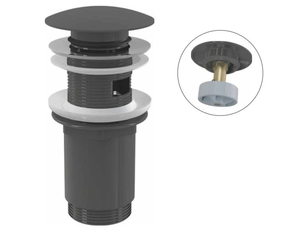 ALCA umývadlová výpusť CLICK/CLACK 5/4" celokovová s prepadom, veľká zátka, GUN METAL-shine A392-GM-P