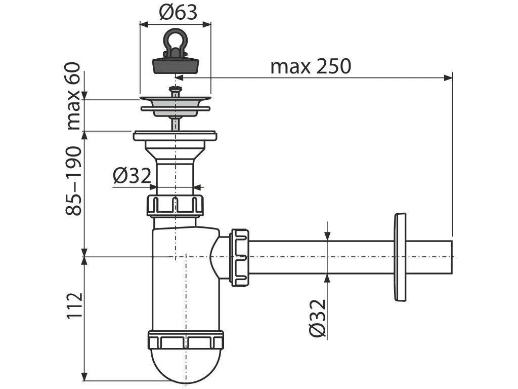ALCA Umývadlový sifón DN32 s nerezovou mriežkou DN63 A410
