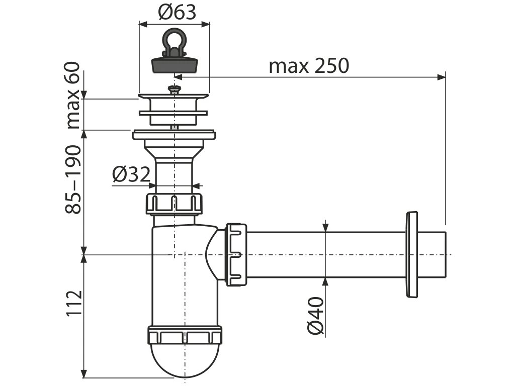 ALCA Umývadlový sifón DN40 s plastovou mriežkou DN63 A42