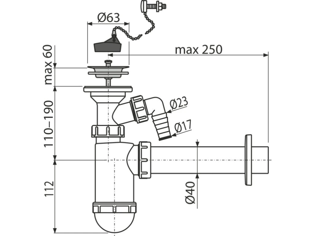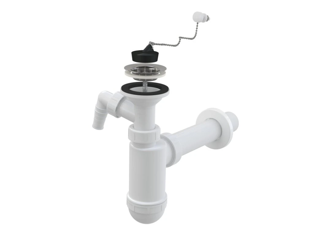 ALCA Umývadlový sifón DN40 s prípojkou a nerezovou mriežkou DN63, reťaz A41PR