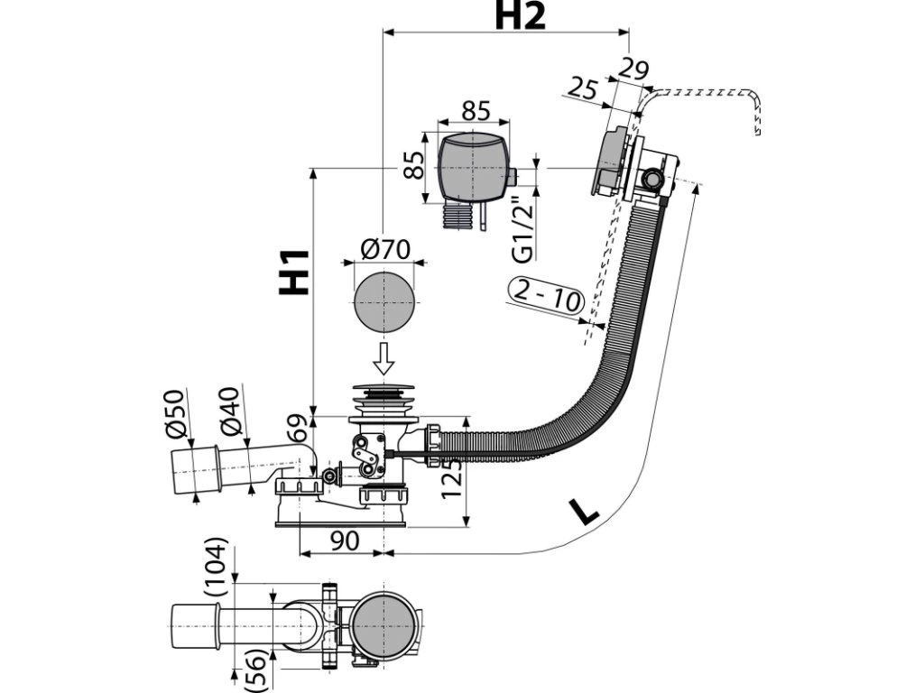- Dĺžka vaňového sifónu 57 cm