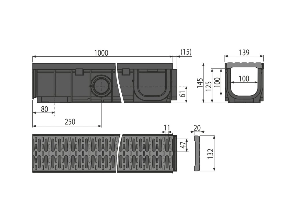 ALCA Vonkajší žľab 100 mm s plastovým rámom a plastovým roštom A15 AVZ102-R501
