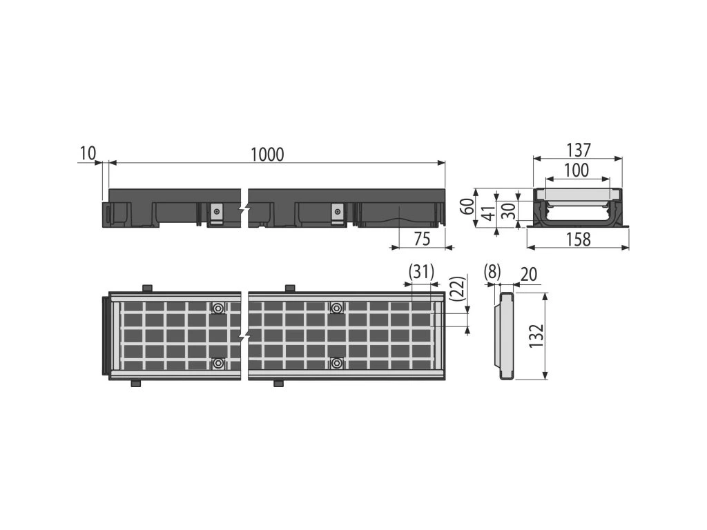 - Korpus žľabu s plastovým rámom