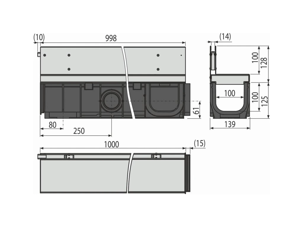 ALCA Vonkajší žľab s asymetrickým predĺžením 100 mm, nerezová oceľ AVZ101-R321