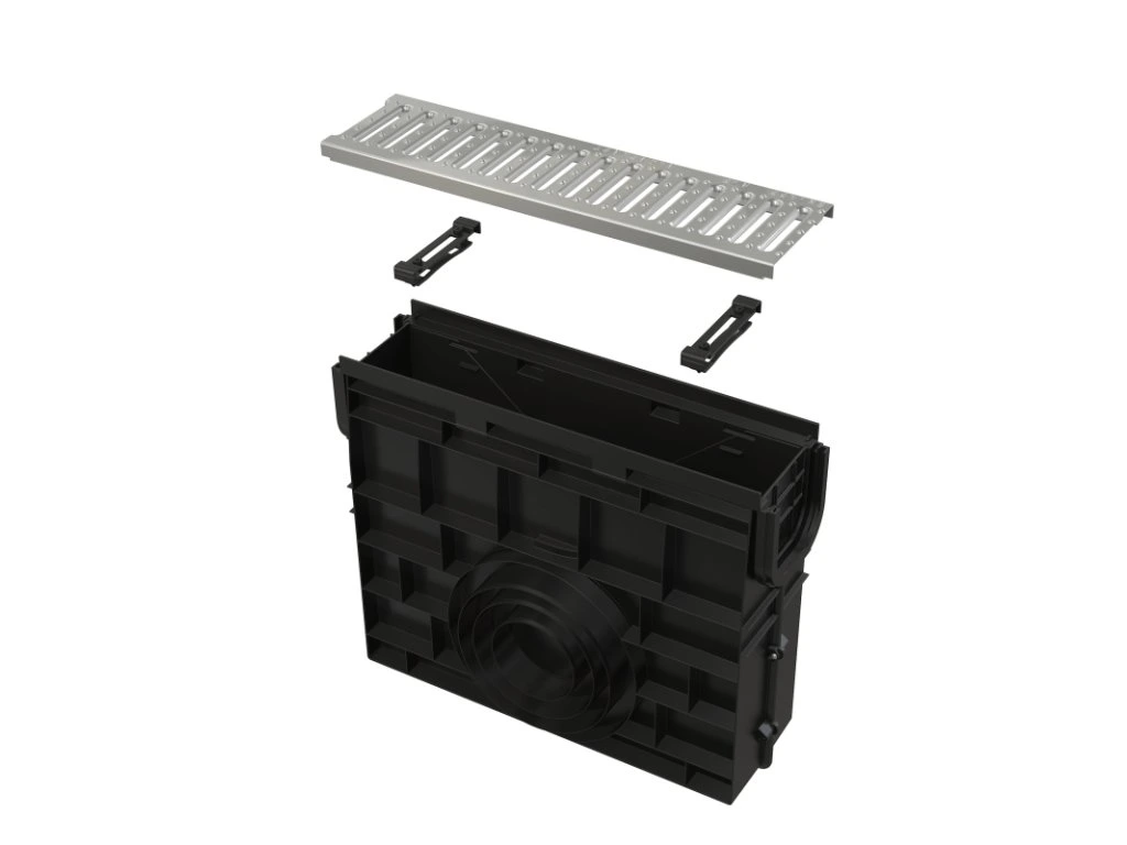 - Pozinkovaný rošt s profilom "C" - upevnený v žľabe pomocou dvoch plastových zámkov, 9 mm široká výtoková štrbina