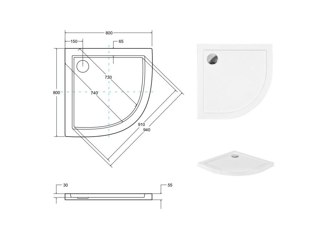 Aplomo Aron Slim štvrťkruhová sprchová vanička Veľkosť vaničky: 80x80cm, BAA-80-NR