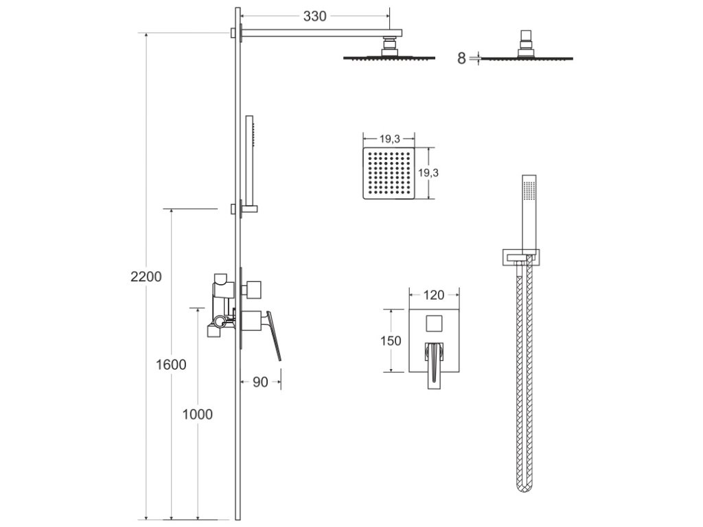 - Rozmery dažďovej sprchy: 20 x 20 cm