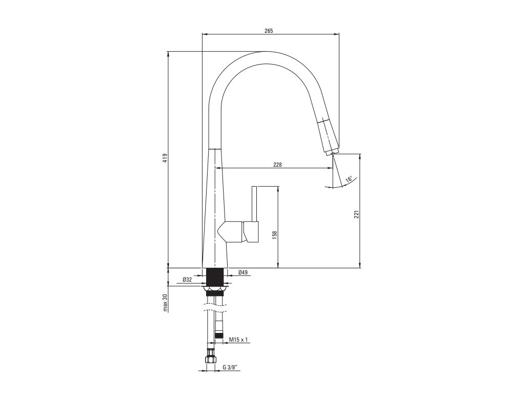 Táto funkčná kuchynská batéria bola navrhnutá s ohľadom na vysokú použiteľnosť a estetický vzhľad. Vďaka elegantnému dizajnu je vhodná do moderných, ale aj škandinávskych či tradičnejších interiérov. Drezová batéria má perlátor, ktorý skracuje životnosť vody, čo je veľmi dôležité pri ručnom umývaní riadu. Okrem toho je prevzdušnený prúd mäkší. Okrem toho sa dá rukoväť predĺžiť na dlhú a ohybnú hadicu, čo uľahčuje oplachovanie veľkých a poddimenzovaných predmetov, ako je plech z rúry alebo police z chladničky.