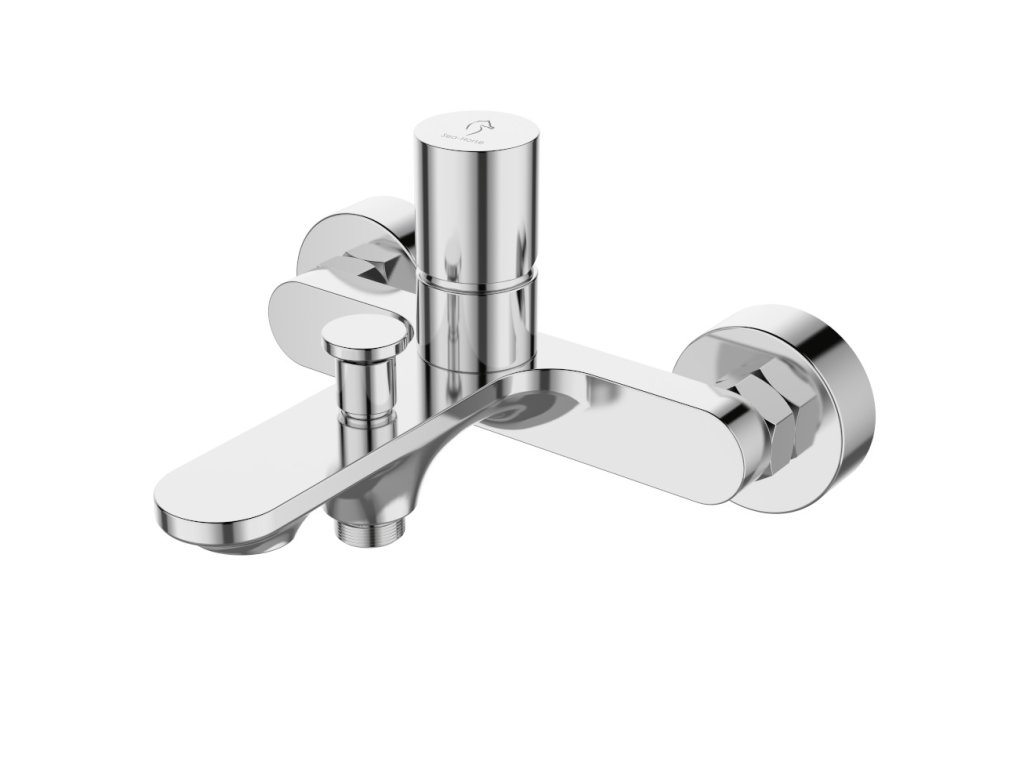 Táto elegantná vaňová batéria Bluo vyniká moderným a minimalistickým vzhľadom. Telo batérie je vyrobené z mosadze, ktorá je potiahnutá vrstvou lesklého chrómu.