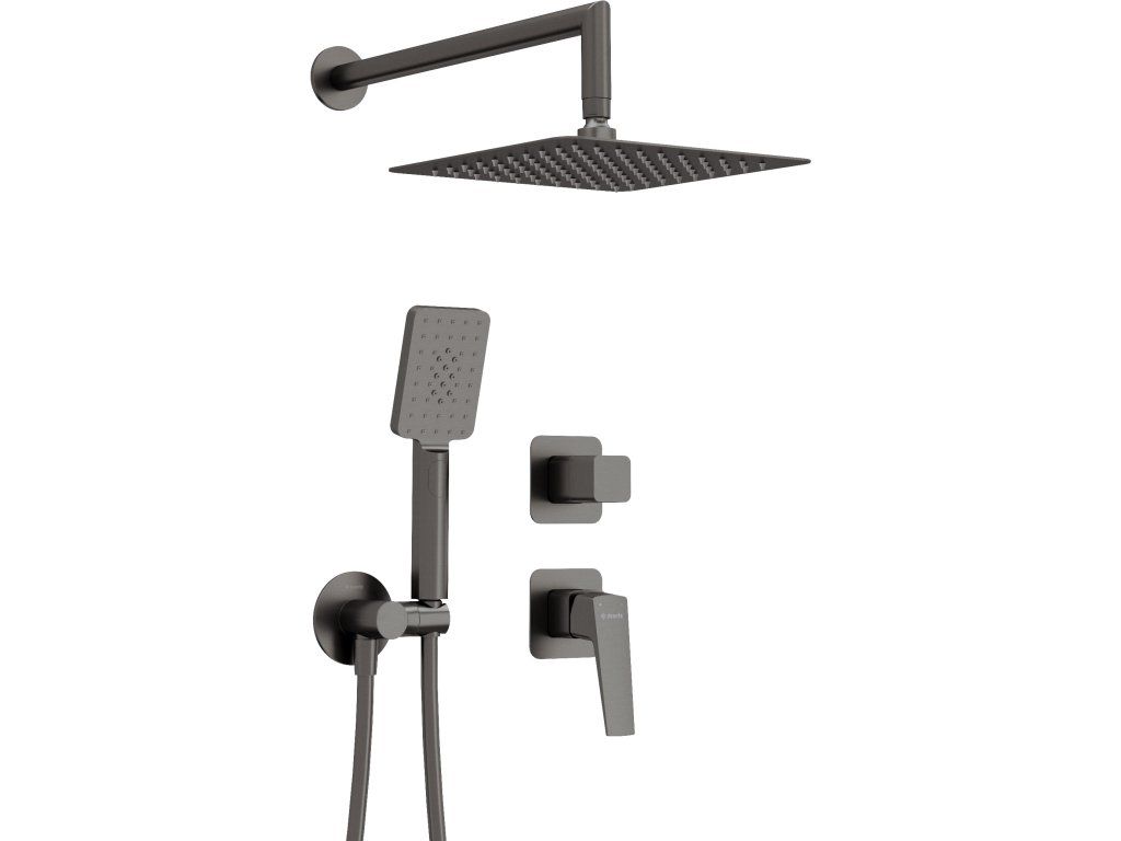 Elegantná skrytá sprchová súprava sa skladá zo sprchovej hlavice, ručnej sprchy s uhlovým pripojením a hadice a zmiešavača. Sprchová hlavica štvorcového tvaru poskytuje rovnomerný a pohodlný prúd vody. Je vyrobená z vysokokvalitných materiálov, trvanlivá a odolná proti korózii. Sprchová súprava je vybavená aj skrytou batériou s ergonomickou pákou, ktorá umožňuje presné nastavenie teploty a intenzity prúdu vody. Celá súprava je vyhotovená v originálnej titánovej farbe a dokonale sa hodí do moderných aj klasických kúpeľňových dispozícií. Vďaka skrytému dizajnu sú inštalačné prvky diskrétne skryté, čo dodáva kúpeľni minimalistický a elegantný vzhľad.