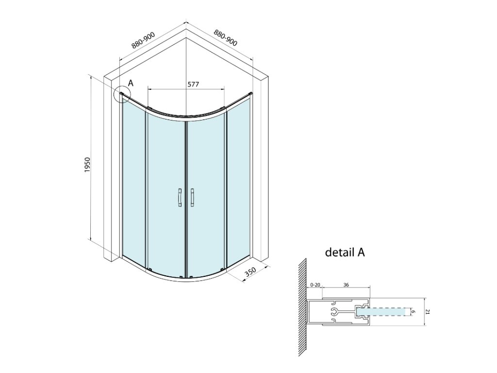 Aplomo Borge 90x90 štvrťkruhový sprchový kút, chróm, 751_090_1
