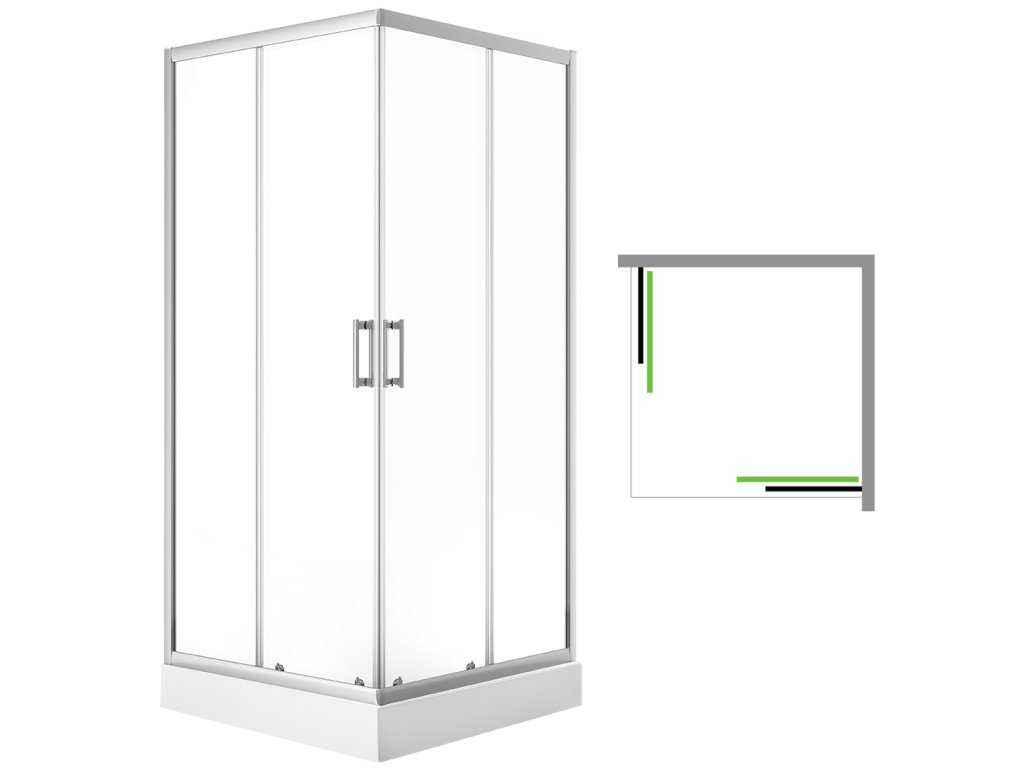 • Dizajnový štvorcový sprchový kút s chrómovými profilmi