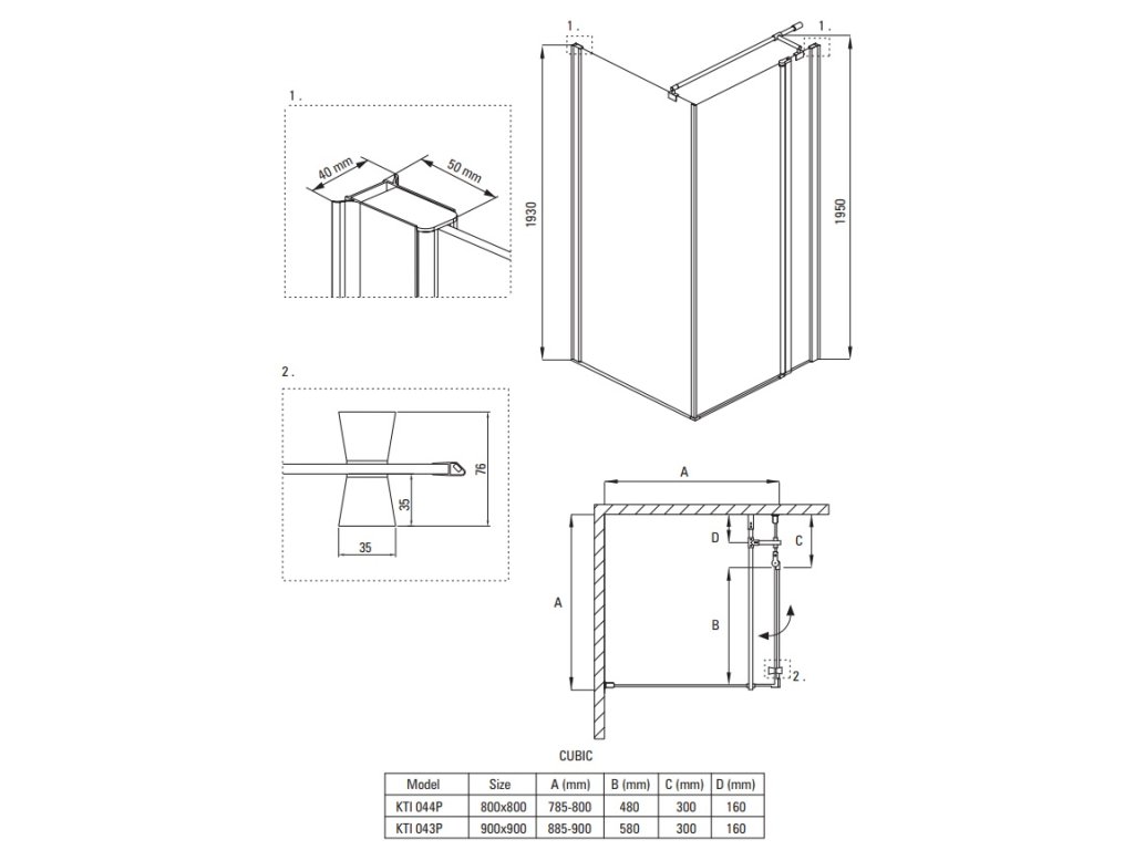 Aplomo Cube štvorcový sprchový kút Rozmery sprchového kúta: 90x90cm, KTI_043P