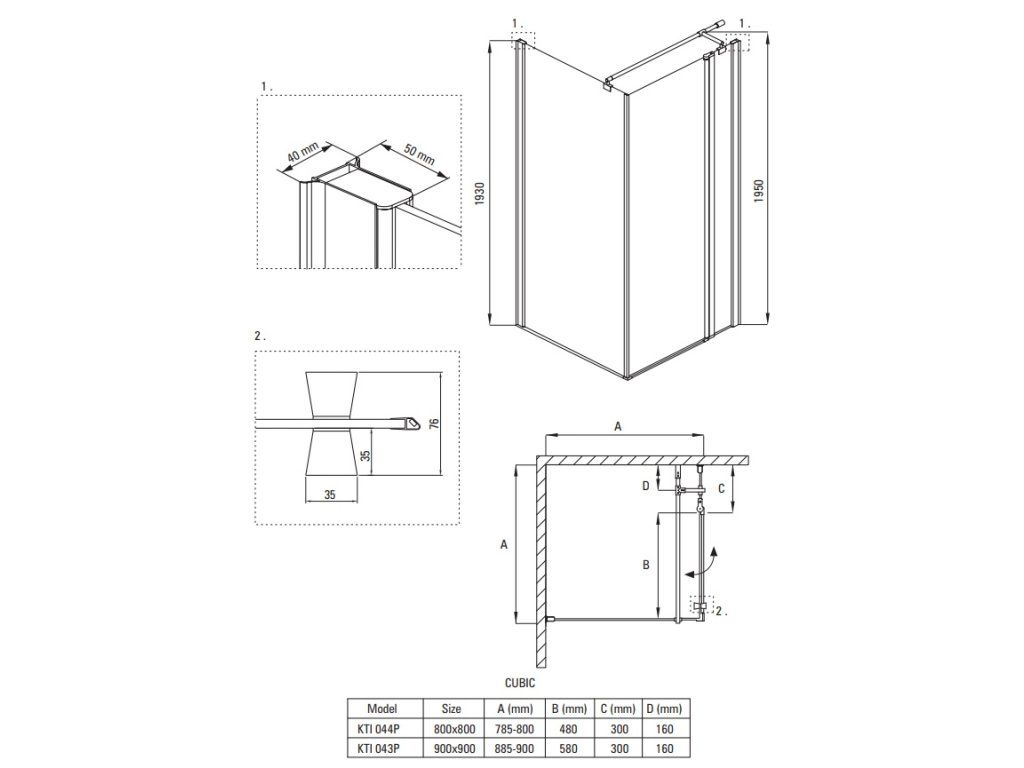 | Cube 80 | 78,5-80 cm | 80 cm | 195 cm |