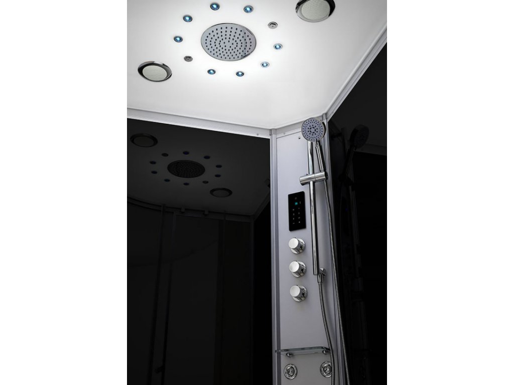 • sprchovací box s parnou masážou v modernom bielom dizajne
