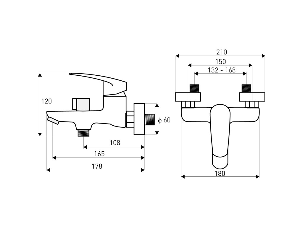 Veľmi praktická a obľúbená vaňová batéria. Zaoblené hrany dodávajú batérii Ester moderný vzhľad.