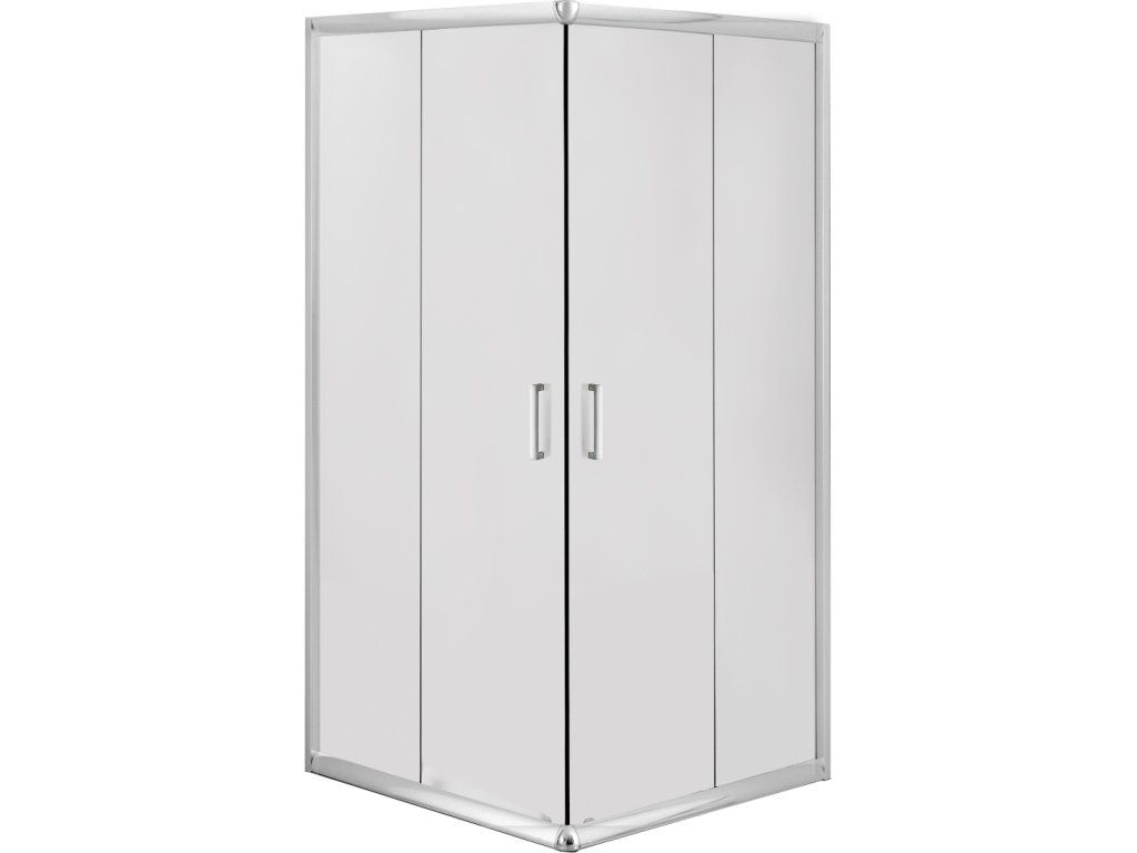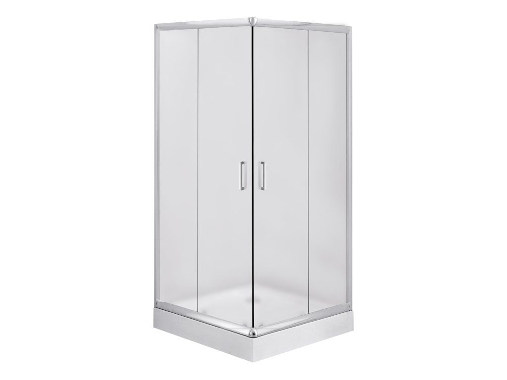 - dizajnový štvorcový sprchový kút s chrómovými profilmi
