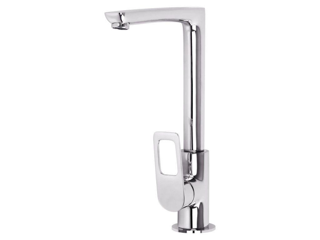 Dizajnová štvorcová drezová batéria. Výška batérie zabezpečuje jednoduchú manipuláciu pod tečúcou vodou.
