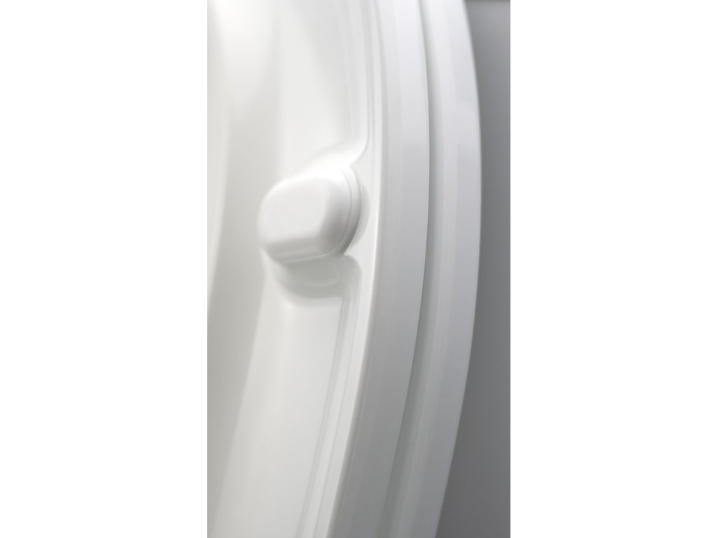 Nasadenie a vybratie záchodového sedadla je rovnako jednoduché ako doteraz - stačí stlačiť tlačidlo. Tento systém zabezpečuje jednoduché čistenie každého zákutia výrobku a udržiava vašu toaletu čistú.