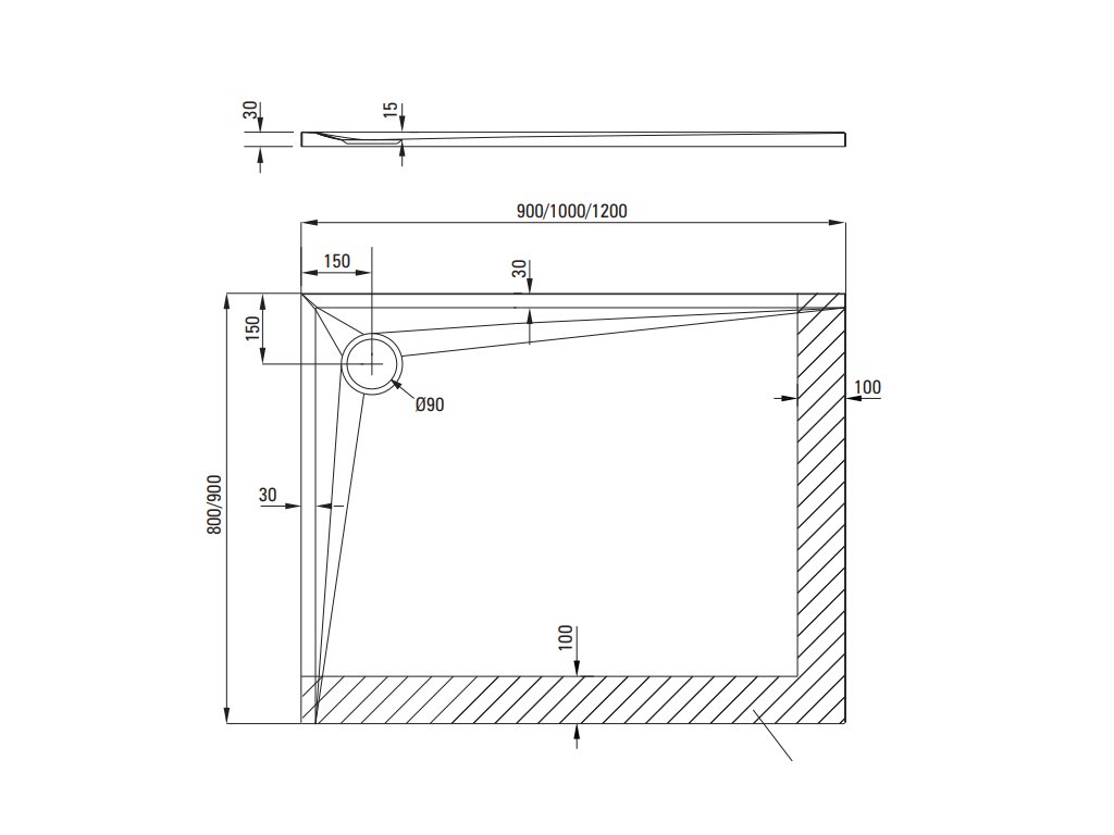 Tabuľka rozmerov sprchovej vaničky Kerria Plus