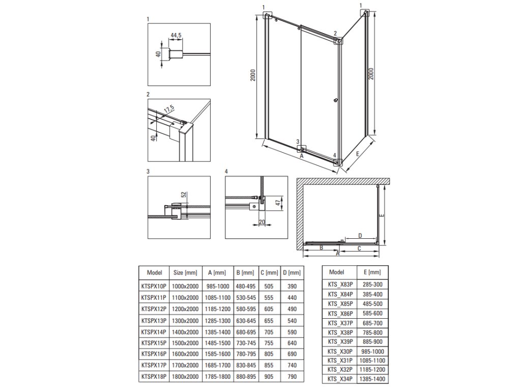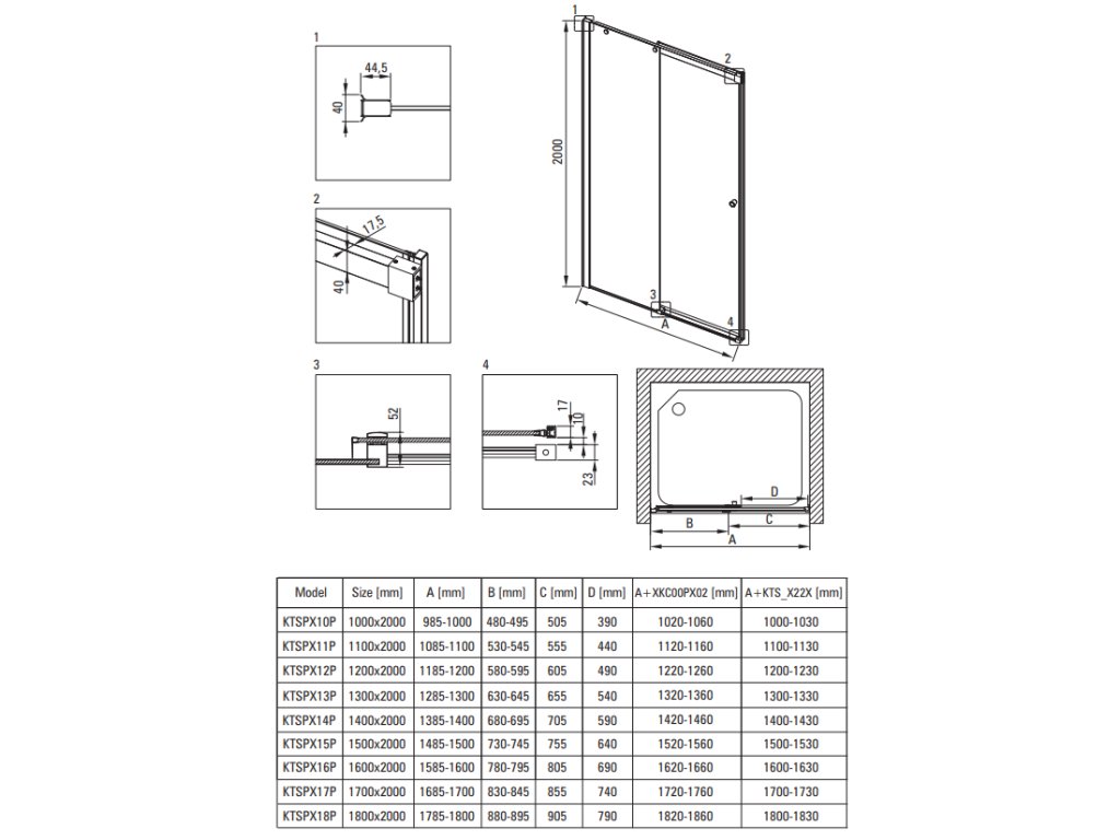 Tabuľka rozmerov sprchových dverí Kerria Plus