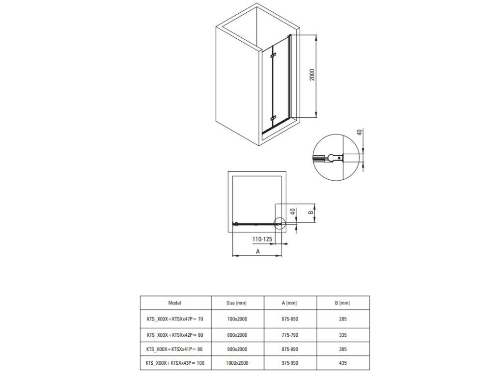 Tabuľka rozmerov sprchových dverí Kerria Plus