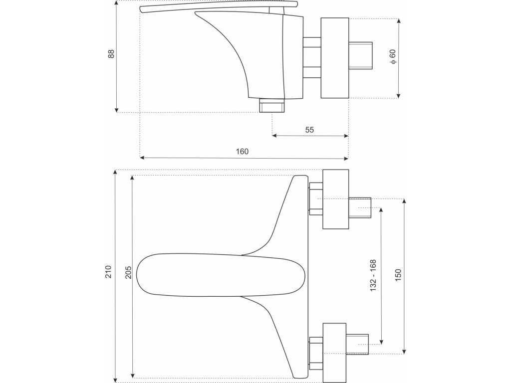 • dizajn - nástenná sprcha, nadčasový vzhľad