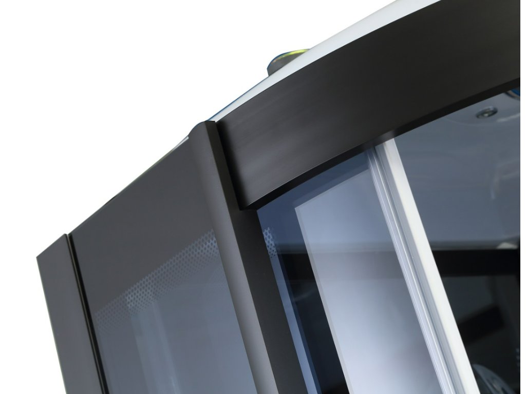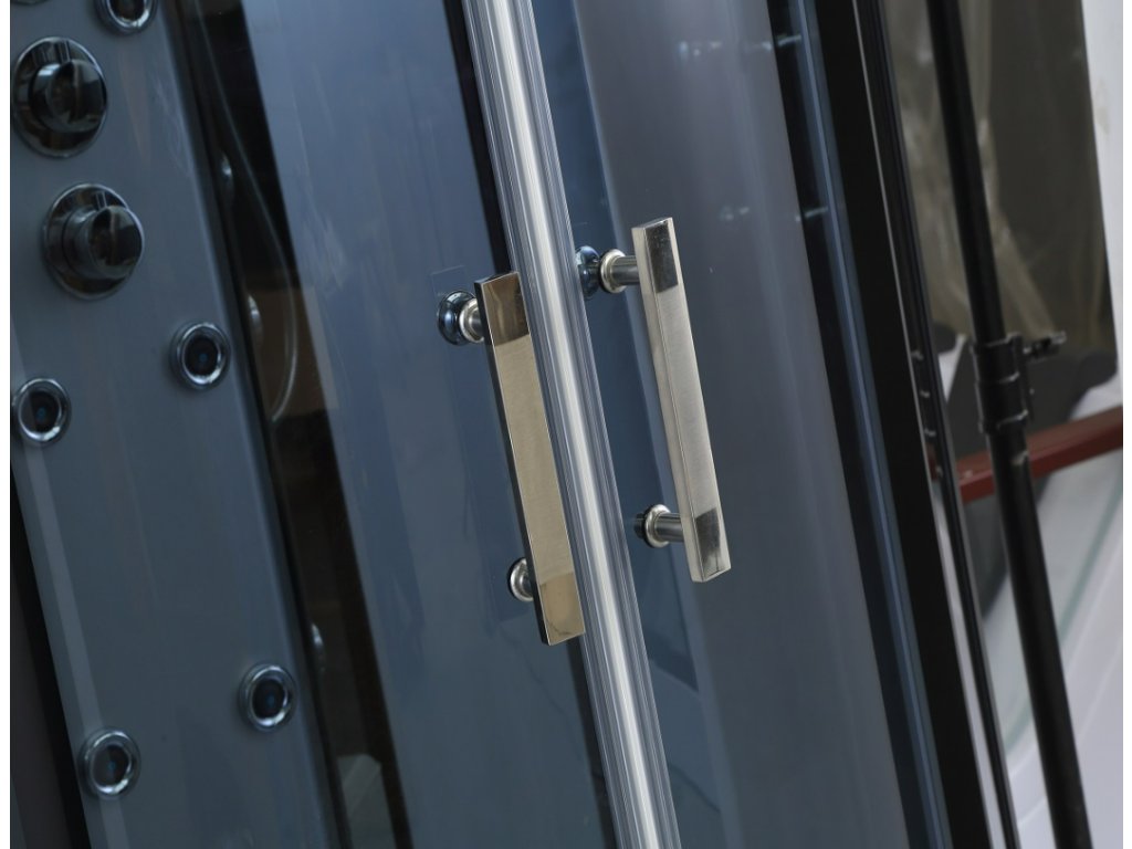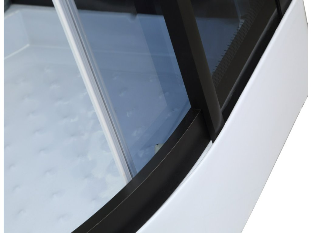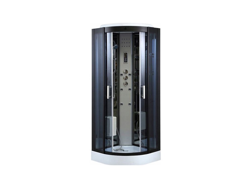 • moderný tmavý dizajn štvrťkruhového masážneho sprchovacieho boxu