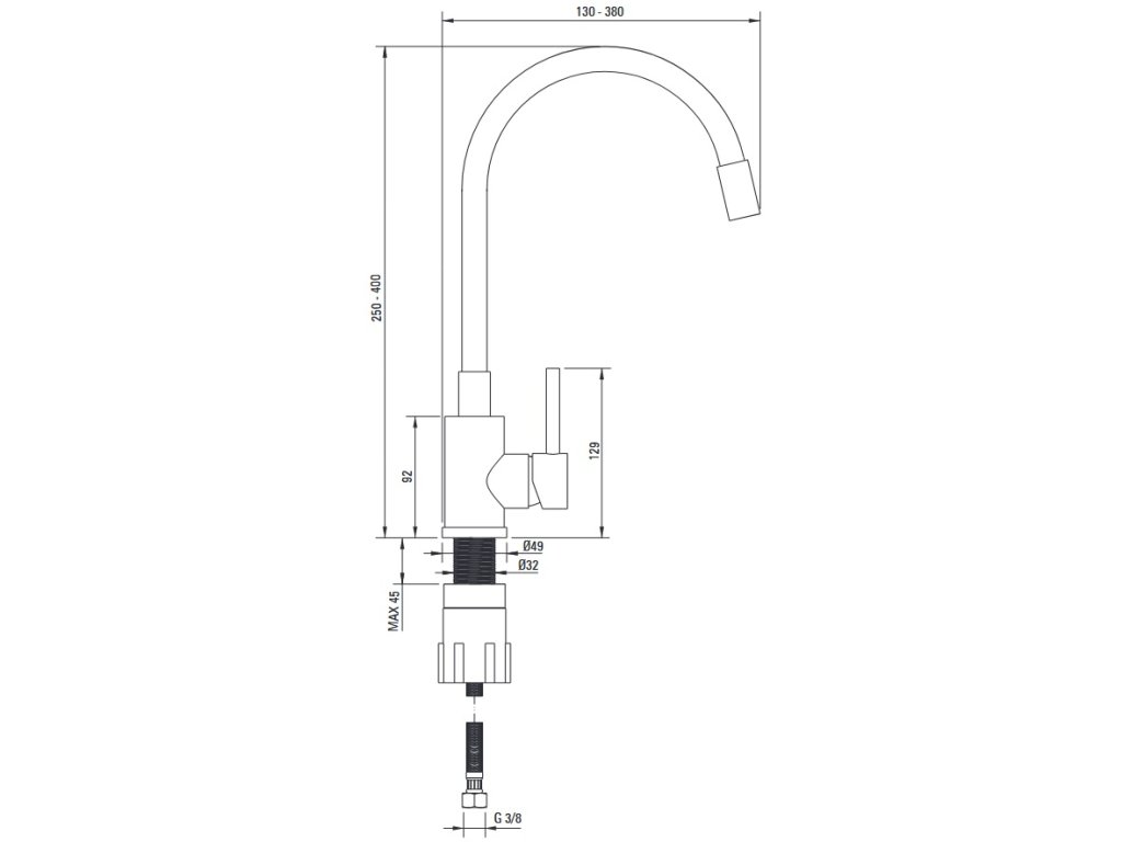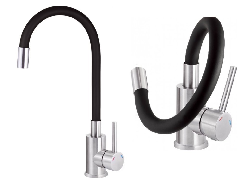 • dizajn batérie - stojánková drezová batéria s U flex ramienkom - flexibilné ramienko