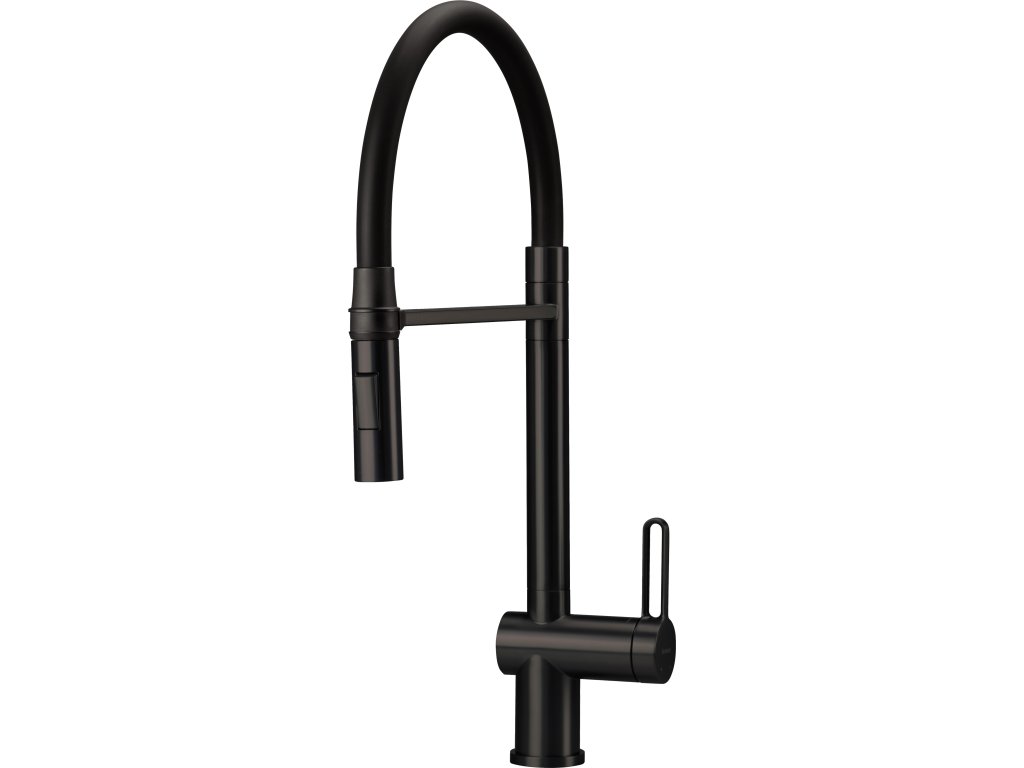 Kuchynská batéria Magnetic v matnej čiernej farbe Nero je výrazným akcentom, ktorý dodá vášmu interiéru eleganciu a moderný nádych. Je vybavená flexibilnou výtokovou rúrkou, ktorá poskytuje komfort pri používaní a maximálnu voľnosť pohybu. Magnetické uchytenie umožňuje rýchle a jednoduché vybratie výlevky, zatiaľ čo dva typy prúdu - prevzdušnený a dažďový - prispievajú ku komfortu každodennej práce v kuchyni. Sýta matná čierna farba Nero dokonale ladí s moderným a loftovým prostredím a podčiarkuje ich jedinečný štýl.