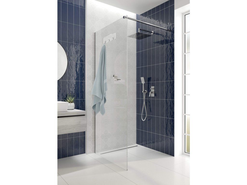 Dizajnový variant sprchového kúta, ktorý sa radí medzi najmodernejšie trendy vo vybavení kúpeľne. Ide o otvorený sprchový kút tvorený jednou stenou, ktorý zabraňuje nežiaducemu striekajúcej vode. Voda sa odvádza cez odtokové kanáliky umiestnené v podlahe. Zaujímavý dizajn výrezov v skle umožňuje zavesiť uterák alebo župan. Oceníte aj vyrovnávací profil, ktorý umožňuje vyrovnať prípadné nerovnosti stien. Sprchový kút Mokko dodá vašej kúpeľni moderný a čistý vzhľad a vaša kúpeľňa získa jedinečný dizajnový nádych podľa najnovších trendov.