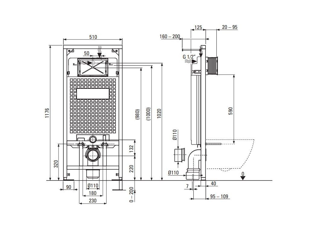 - rám je prispôsobený na inštaláciu mís s inštalačnou vzdialenosťou 180 a 230 cm