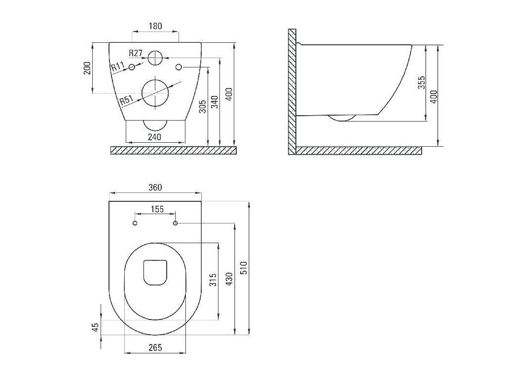 - obsahuje splachovací modul, závesnú misu s WC sedadlom, splachovacie tlačidlo, skrutky na upevnenie misy