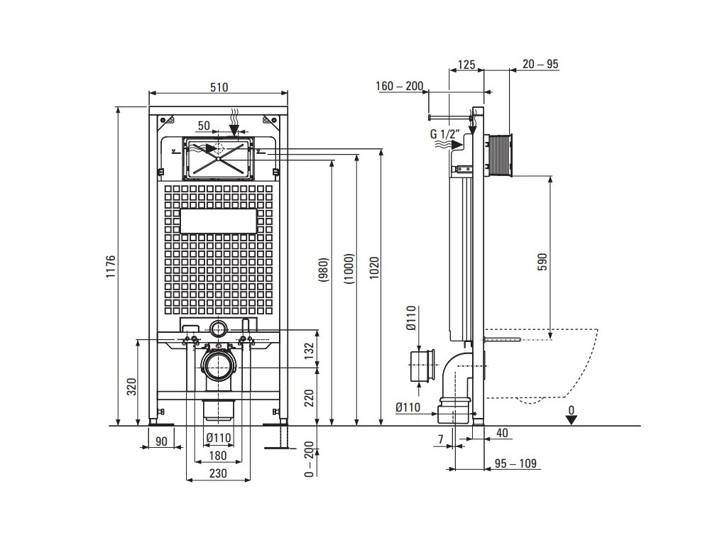 - rám je prispôsobený na inštaláciu mís s inštalačnou vzdialenosťou 180 a 230 cm