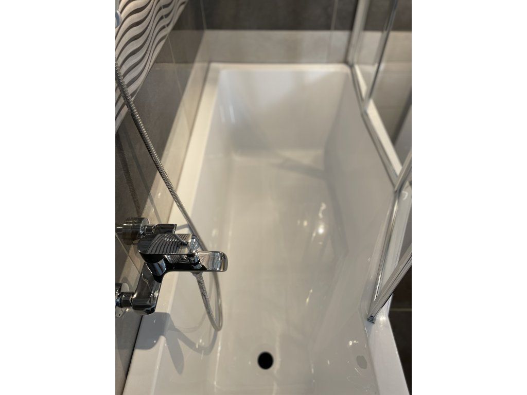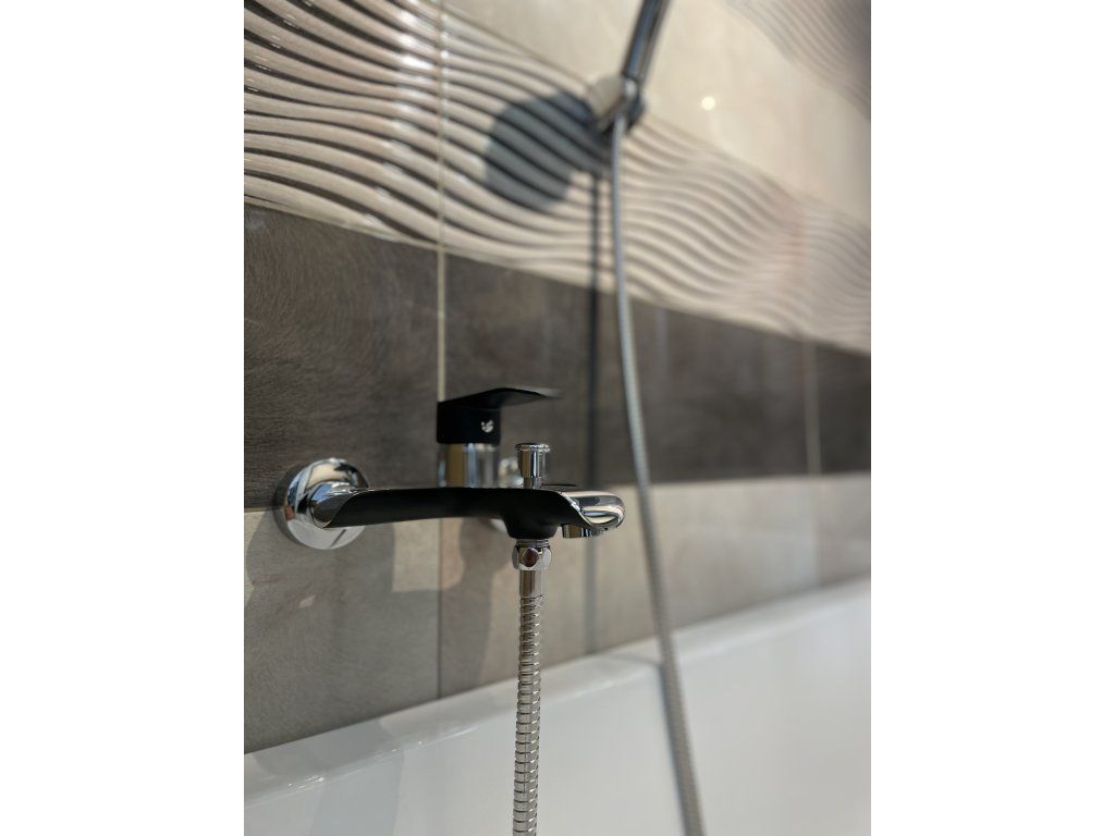 - moderná vaňová batéria v čiernej a chrómovej farbe