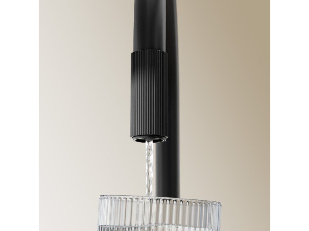 Umývadlová batéria SWITCH spája minimalistický dizajn založený na vyvážených proporciách s praktickou funkčnosťou, ktorá zabezpečuje pravidelný prísun vody a filtráciu. Jasne definované a precízne spracované detaily umožňujú intuitívne používanie tým, že poukazujú na dva samostatné prúdy vody: normálnu vodu v blízkosti páky a filtrovanú vodu na konci výtoku - stačí otočiť rebrovaným krúžkom výtoku a rýchlo naplniť pohár lahodnou čerstvou pitnou vodou.