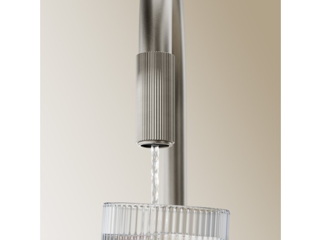 Drezová batéria SWITCH spája minimalistický dizajn založený na vyvážených proporciách s praktickou funkčnosťou, ktorá zabezpečuje pravidelný prísun vody a filtráciu. Jasne definované a precízne spracované detaily umožňujú intuitívne používanie tým, že ukazujú na dva samostatné prúdy vody: normálnu vodu v blízkosti páky a filtrovanú vodu na konci výtoku - stačí otočiť rebrovaným výtokovým krúžkom a rýchlo naplniť pohár lahodnou čerstvou pitnou vodou.