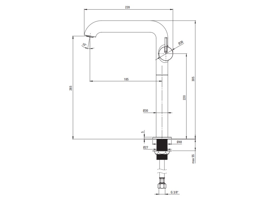 Popis vysokej umývadlovej batérie Silia s obdĺžnikovým výtokom