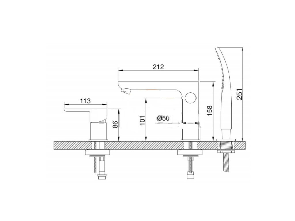 Aplomo Siri 3-otvorová vaňová súprava, chróm, BW-90-S01