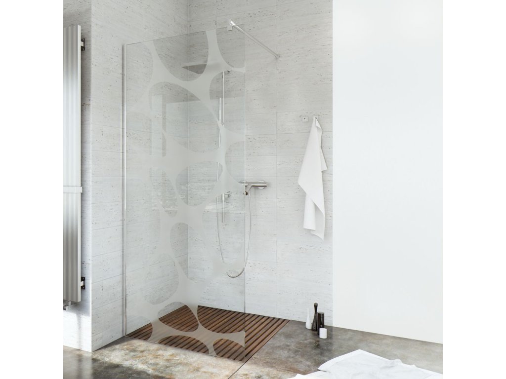 Dizajnový variant sprchového kúta Walk In s mliečnym dekorom, ktorý je jedným z najmodernejších trendov vo vybavení kúpeľní. Ide o otvorený sprchový kút, ktorý pozostáva z jednej steny z 8 mm hrubého bezpečnostného tvrdeného skla, ktoré zabraňuje náhodnému postriekaniu vodou. Povrchová úprava Easy Clean zabraňuje usadzovaniu nečistôt na skle a tvorbe tzv. vodných máp. Voda sa odvádza cez odtokový kanálik umiestnený v podlahe. Vďaka tejto technike sú hliníkové profily chránené proti korózii, poškodeniu a zmene farby. Sprchový kút dodá vašej kúpeľni moderný a čistý vzhľad a dodá vašej kúpeľni jedinečný dizajnový nádych podľa najnovších trendov.